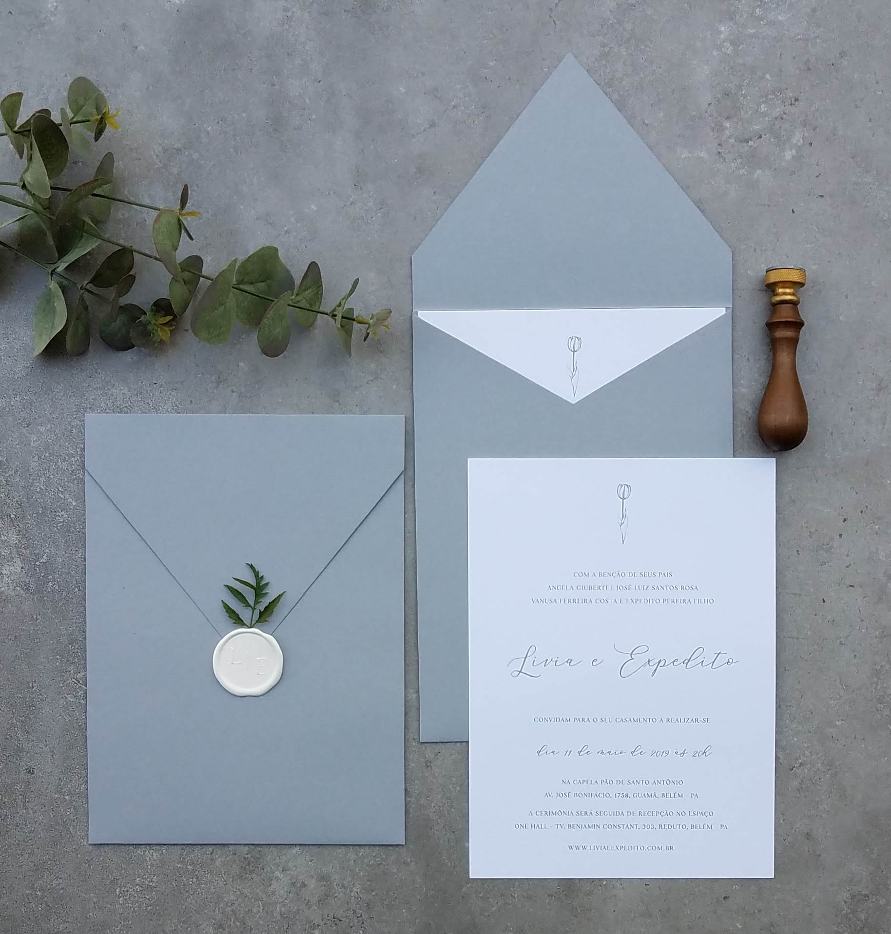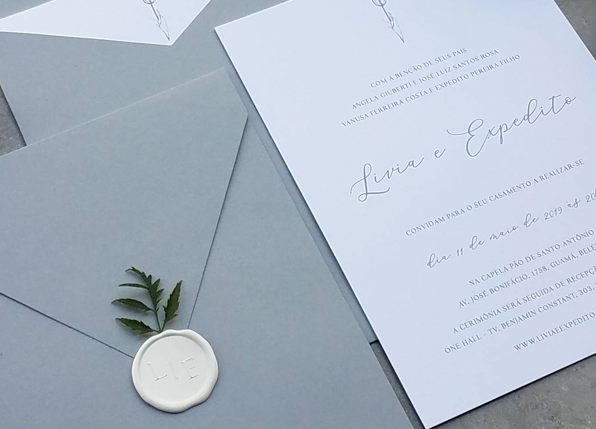 Casamento Livia e Expedito Convite com lacre de cera personalizado Convite Livia e Expedito Reservado de mesa Menu 1 lâmina